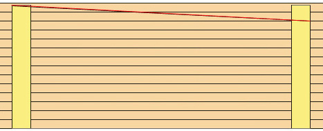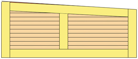 Draw a line from the front edge of the front upright, at the height chosen for the wall, to a point at the back edge 2 boards lower. (My front point was 2.5" high, to the rear edge, about .5" lower.) REMEMBER THAT THE TWO WALLS MUST SLOPE IN OPPOSITE DIRECTIONS.