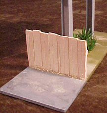 The base was then painted a neutral green shade behind the fence, and concrete-colour in front. Sand was glued around the base of each beam, and at the front and back base of the fence.