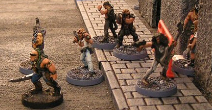 Sidewalks / pavement really help the look of any urban battleground, and help make buildings look less like boxes dropped onto the table. As you can see, they were well worth the effort! |