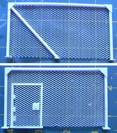 The doors were pieces of L rod plasti-rod cut to size. Then the section of the mesh where the door is going to be is cut out, the frame and section glued in place.