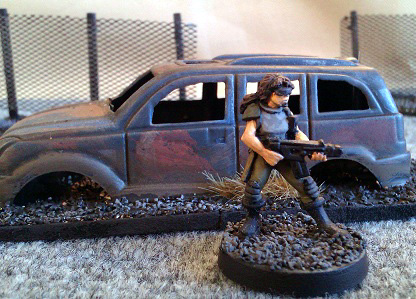 Buildings aren't the only kind of terrain you'll want for a game of Combat Zone. Taking inspiration from a previous article on the Combat Zone Chronicles, I took a toy car from Poundland, tore out the wheels, seats and innards (throwing them all into my parts box, of course – waste not, want not) and mounted it on a card base. As with all cheap plastic toys, I gave it a good wash and a sanding before spray priming it and painting it in beaten-up, rusty colours.