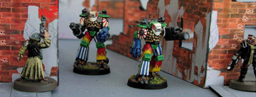 Let’s be honest. When the lead starts flying, you can never have enough scenery. Scenery is cover and cover is the difference between survival and extinction. One of the features that makes Combat Zone such a great game for beginners is the ready-to-use scenery that is included in the box. Anyone buying the game can play right away with some nicely printed basic terrain. Pretty soon, more exciting scenery will be bought or made and the original flimsy walls on their ugly plastic stands will be left in the box and lay forgotten. This is a mistake. Let’s be honest, in the deadly world of near future skirmish, you can never have enough scenery because scnerey is cover and cover is the difference between survival and extinction. The Combat Zone scenery is visually attractive but it’s not particularly sturdy. It can however easily be made sturdy and very useable. There’s nothing clever about what needs to be done. The purpose of this article is mainly to persuade you that the box terrain is worth persevering with. In the Combat Zone set are two identical sheets of die-cut scenery. Since each side of the sheets is different and we are only going to feature the printing from one side of each sheet, the finished pieces will all be different; you won’t have the same piece of graffiti, for example, appearing twice.. Let's get to work! Obviously, the first thing to do is press out the individual pieces. Next, they have to be strengthened which is simply done by gluing them to some thicker card; 1.5mm |