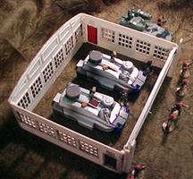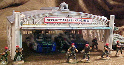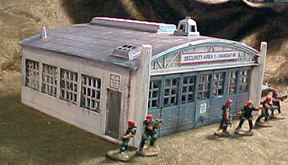 Conspiracy Theorists spoke of top secret weapons research at Area 69. Others just made stupid jokes. Maybe they were both right... I picked up the Plasticville Hangar as part of a lot on ebay a few months ago. Right now I have another on the way, as part of another lot. At this rate, I'll be able to field a military/scientific complex being raided for it's secrets. It won't be a bad table, as the hangar is actually a pretty good-looking kit.