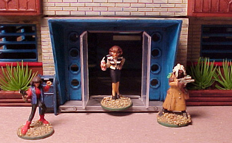 The balconies (originally flush with the walls) needed deepening to accept miniature bases. I use the infinitely superior 20mm bases, so my figures easily fit in reasonable spaces. The building was NOT designed for gamers. Close, but not quite. The storeys are separate, perfect for inserting figures. (Actually designed so as to reuse the same pieces on 3 walls, and to facilitate adding extra storeys.) However, the shelves to support upper floors are on the top of the storey below, not on the storey above, so each storey isn't a 'tray.' The walls and floors are separate from one another. A minor inconvenience. Once the alterations were made, I added plastic letters from a Dollar Store to give it a 50's-style 'Futuristic' name to go with it's styling. I then primed it and painted it in Florida Decor. I dirtied it up with 'Magic Wash.'