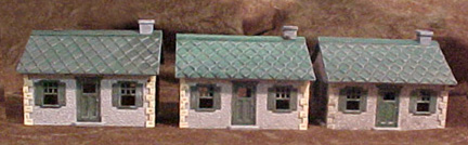 First released in 1948 or '49, the kit has been issued in various colour combinations. As a result, you may find yourself making franken-houses from different kits. (NB: The chimney is often missing, but the chimney of the Suburban Station is the same piece.)