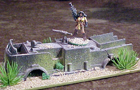 The walls have a rather indeterminate texture. Given the popularity of stucco when these kits were made, I assume that's what was intended. The corners represent stone, and actually lock the kits together.
