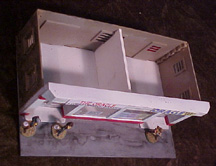 I t was glued to a sintra base, with a central wall added. The roof, walls, and sidewalk were weathered with black and brown washes.