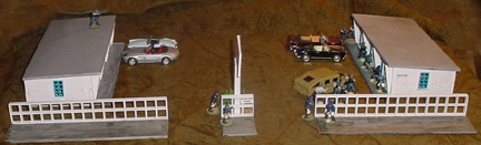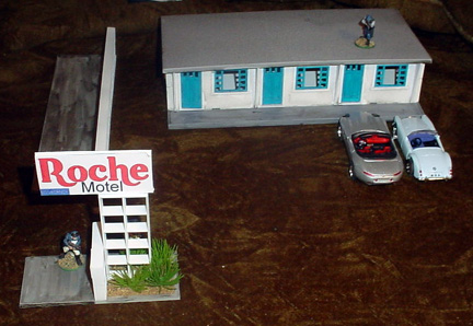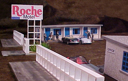 The buildings themselves are wonderful pieces: The fit is good, all the doors open, and they are attractive buildings. The walls and rioof have interesting texture, and they really capture the 'look' of early Motels.
