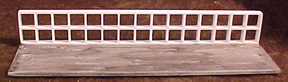 The front walls and sign support are cut from a section of white plastic grille intended to cover flourescent lights. They were cut to size, and then sanded until smooth. (NB: Be very careful when doing a lot of plastic sanding. You do not want to inhale the dust, and you don't want the kids or pets to do so either)