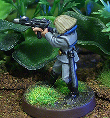 To get that lush jungle feeling going I got a good many varieties of plants. For each jungle base I picked two to three stocks of one or two larger plants to form the centre and glued these into place with the glue gun. Then I added some smaller plants to the sides of these. Finally the bases were painted with burnt umber, covered with dried tea and some small plants were added. |