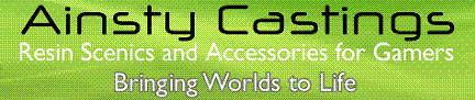Examples of miniatures, terrain, accessories, and scenarios, all apparently done by a baboon! |